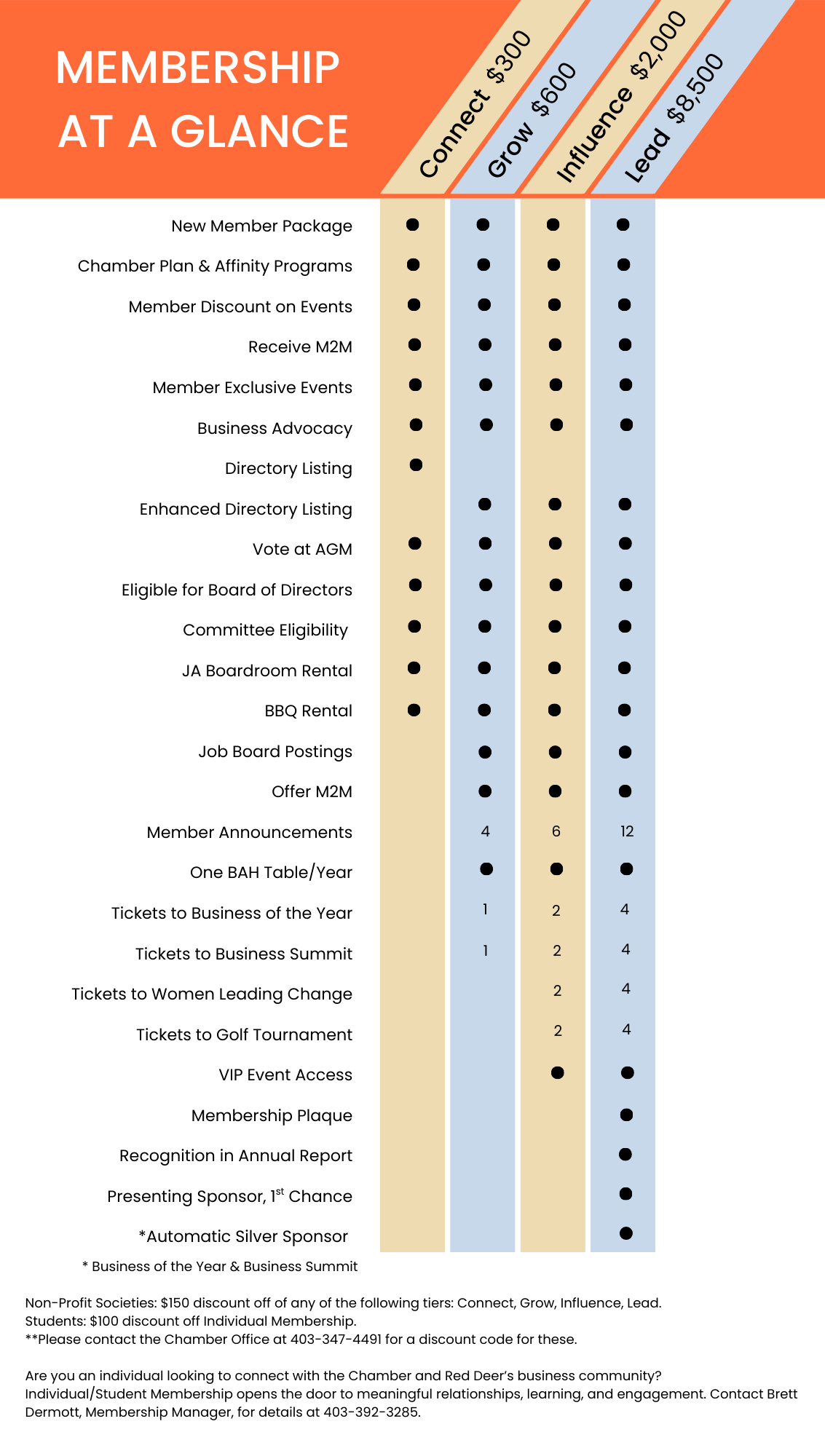 There’s a Red Deer District Chamber membership to suit every business. Discover how you can join a strong and diverse network of Central Alberta business leaders, with options designed to grow alongside your goals.